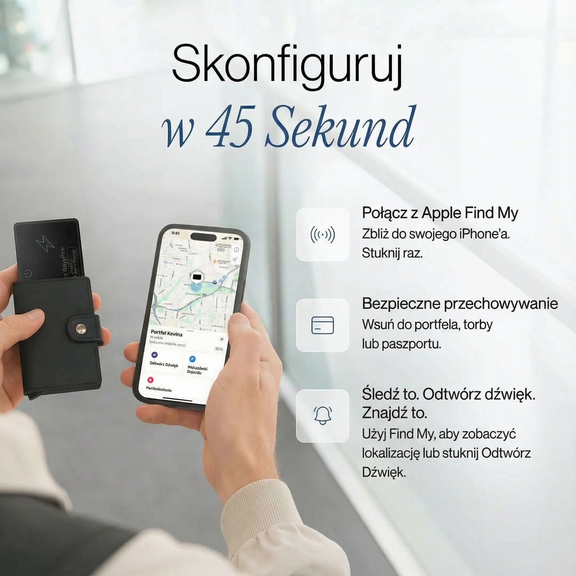 Tak. Karta korzysta z sieci Find My firmy Apple lub Find Hub systemu Android — miliardy urządzeń pomagają zlokalizować Twój portfel w dowolnym miejscu na świecie.