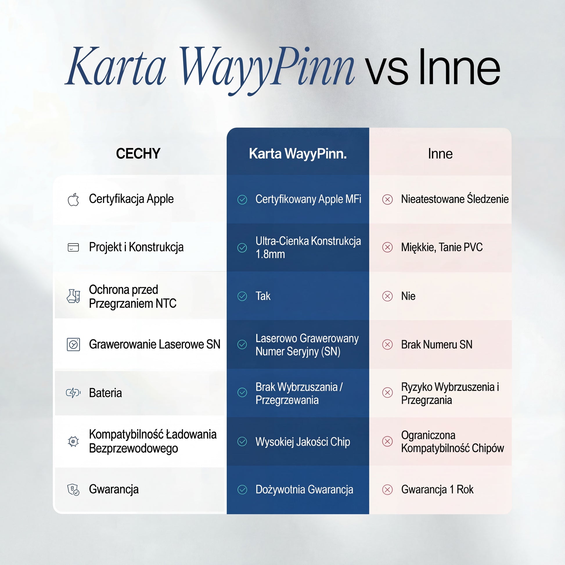 Większość trackerów do portfeli jest nieporęczna i nie pasuje. WayyPinn jest prosty: ma 1,8 mm grubości, wsuwa się do dowolnego slotu na kartę i jest gotowy w 2 minuty. Tylko Ty wiesz, że tam jest.